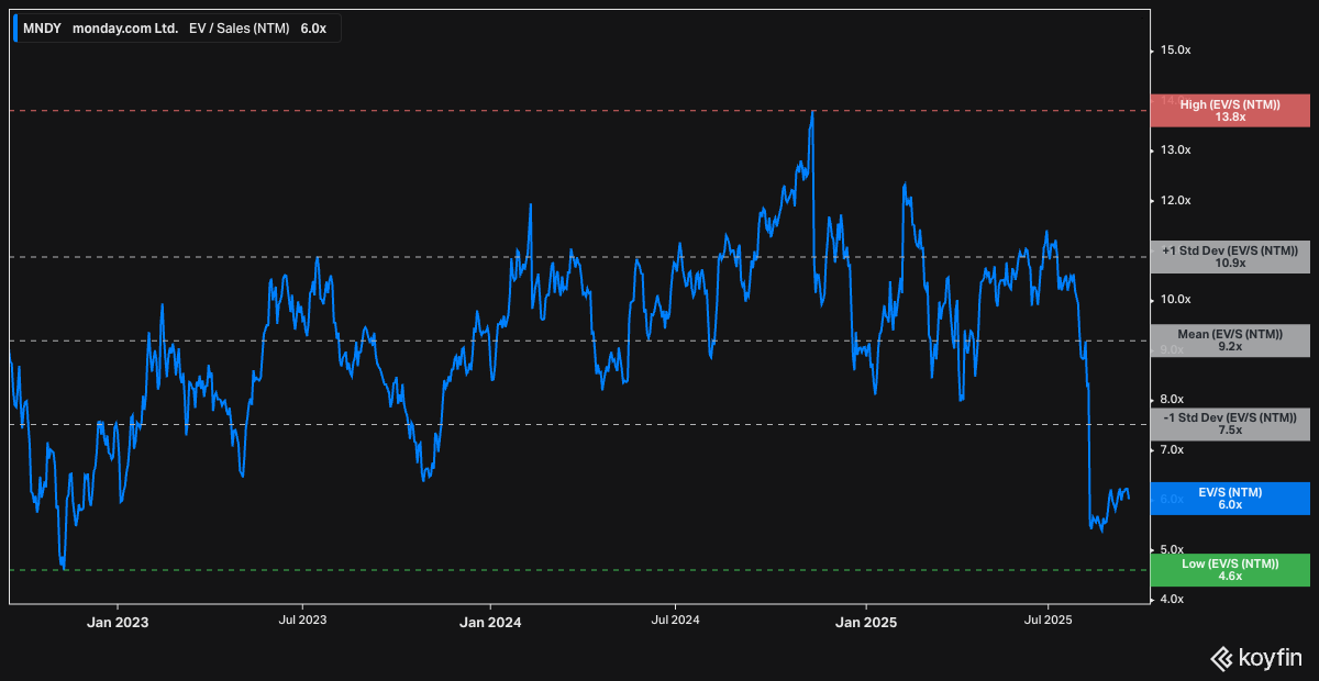 Bottom line: Monday.com is executing a compelling transformation while trading near multi-year lows—the risk/reward here looks very attractive. My back-of-envelope math suggests the company will generate north of $8.7/share in uFCF during 2026, assuming roughly 24% revenue growth and a stable 30% FCF margin. Applying a conservative 25x multiple (factoring in $32/share net cash and 54M shares outstanding) gets me to a $250 target—30% upside from current levels. The 25x multiple is deliberately conservative, representing essentially 1x growth-adjusted EV/uFCF, when quality software typically trades at much higher growth-adjusted multiples.